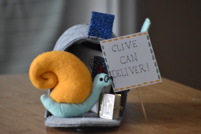 I proudly present to you, Clive the Snail Mailman. Or should that be Clive the Snail Mail-slug? He’s intelligent, he’s friendly, he knows the neighborhood, he’ll never let you down. Clive can deliver!