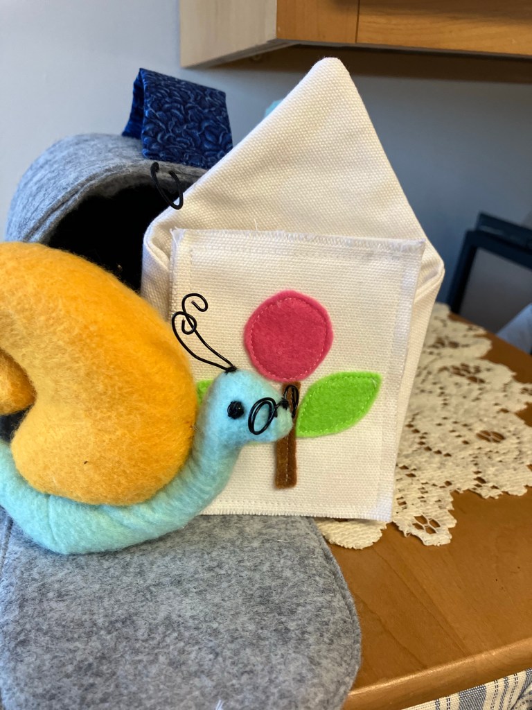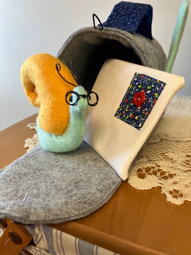 I discovered something important while working on this project. I bought some wool blend gray felt for the mailbox instead of the usual cheap felt made from plastics because I needed a bigger piece. I think I’m ruined now for working with the cheap stuff. The wool was so soft and easy to work with. You get what you pay for. You can quote me on that.