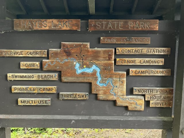 We left the idyllic realm of Lake Bronson and made our way over to Hayes Lake State Park. Like Lake Bronson, Hayes Lake was a created lake, but the way the park pamphlet describes it, it sounds like a government takeover. “…one of the first developments was to create Hayes Lake by impounding the north fork of the Roseau River.” What? You can impound a river fork? Also, “the land around the lake was once a collection of private homesteads that has been returned to the forest.” Was the forest asking for it back? Smells like eminent domain to me, but that’s not a discussion that falls into the purview of this narrative. So, back to business.
