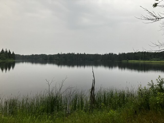 Zippel Bay State Park is way, way, up north in Minnesota, hugging part of the shore of Lake of the Woods, which comprises part of the boundary between the U.S. and Canada. When we got to the park, it was still raining, but by the time we got to the place where the trail started, it had stopped. Thank you, Lord!