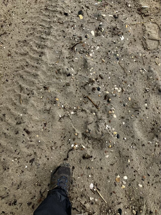We tried to avoid the inland portion of the trail on the way back but discovered that you couldn’t actually do the whole trail on the beach. Oh well. I saw a little snake on our way back and whipped out my phone to get a photo, but the snake was on to me and all I got was the tail end.