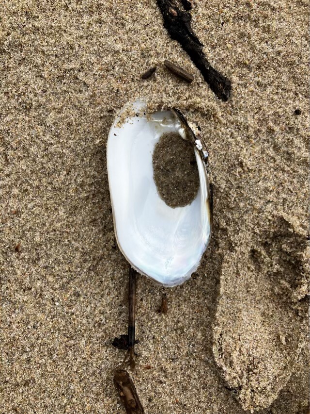 I picked up a stone that I thought looked like an arrowhead. I’ve always wanted to find an arrowhead and this might the closest I get to it.