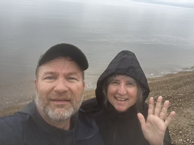 When we finished, Kris wanted our selfie to include the lake, and even the ship that was way out on the water and looked tiny from where we stood. Fortunately, we just couldn’t get that ship in the frame with us. And why is that fortunate, you ask? Kris posited that if it was a drug running ship, they’d have been watching us through telescopes and if we’d caught their illegal activity accidentally with our camera, they’d have had to set their dogs after us and silence us. What a fate we barely missed! (I’m not the only one in the family with an active imagination, you see.)