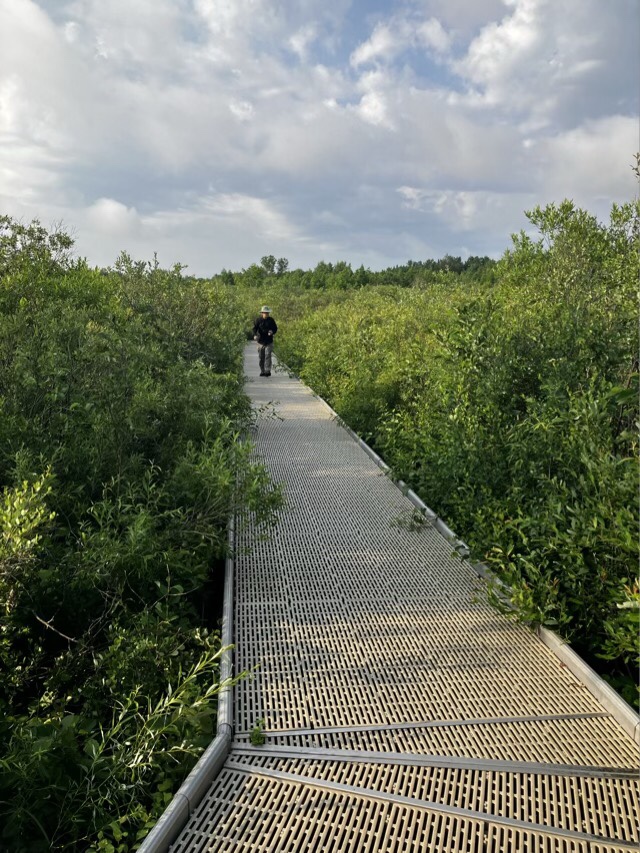 At the end of the boardwalk, we had emerged from the humid claustrophobia of all the trees and plants out into the open where there was a nice cool breeze. It’s a mile out to the end and then you just turn around and go back again.
