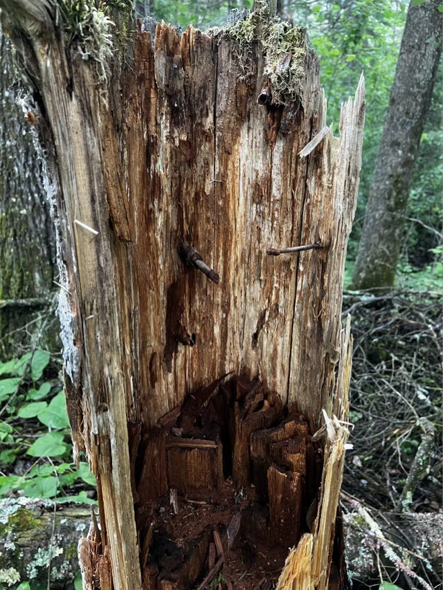 This was another out and back hike instead of a loop. There were some tree stumps here and there and my observant husband noticed that on the inside of one stump a lot of the plant matter had gone, but you could still see where some of the small twigs that had grown through the bark were still there. Hard to explain, so here’s a photo.