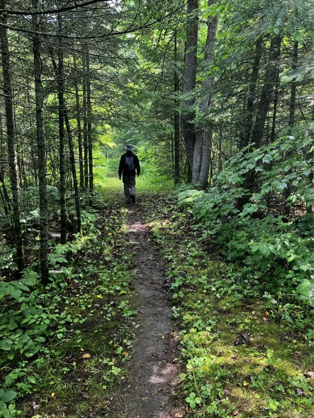 The trail was narrow with lots of ups and downs. By this time we weren’t seeing a lot of new and interesting foliage, so there weren’t as many photos taken or plants identified. The trail goes along one side of the Rainy River, which forms another border with Canada. We didn’t see much of the river after the first part of the hike since the tree growth by the trail was so dense.