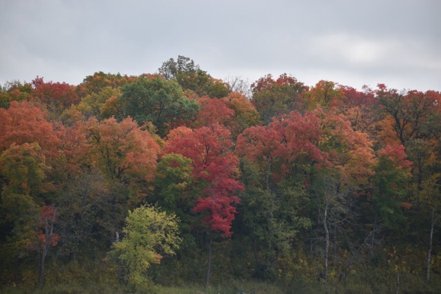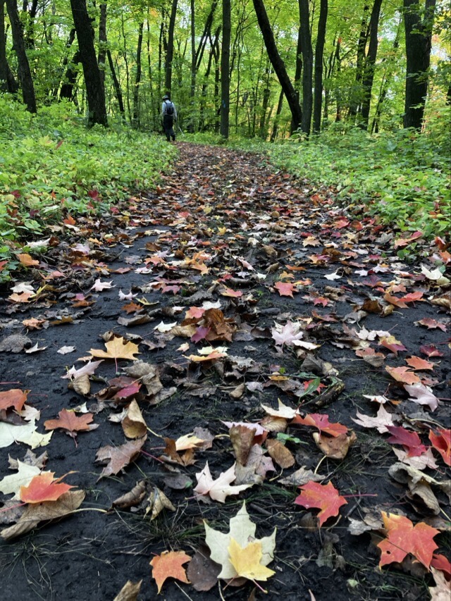 This marks our 68th and final hike through the Minnesota State Parks and State Recreation Areas. We decided to allow ourselves the luxury of staying in comfortable lodging the night before so we stayed in Detroit Lakes, rather than camping at the park. This 6.2 mile hike at Maplewood State Park is one of only four Hiking Club hikes that are that long. We decided to leave it for last and to do it in the fall, since the Hiking Club pamphlet mentioned it was especially impressive at this time of year.