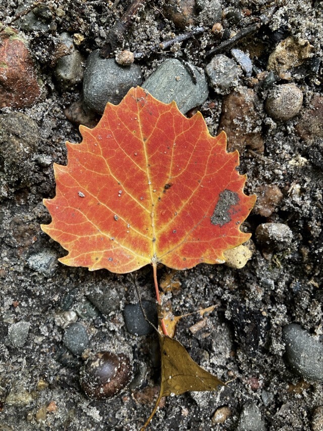 Once we left Beers Lake behind, it looked like we only had about 1.5 miles left. Only. There’s a big difference between the first 1.5 miles and the last, particularly when the road has been long and hilly. We passed a couple more groups of horseback riders, both of which commented on what a bonny day it was for a hike. “Yes, it sure is!” I’d reply, sweat pouring down my brow. I wasn’t just saying it either – it had gotten warmer, but it was a champion fall day, brilliant with color and sunshine.