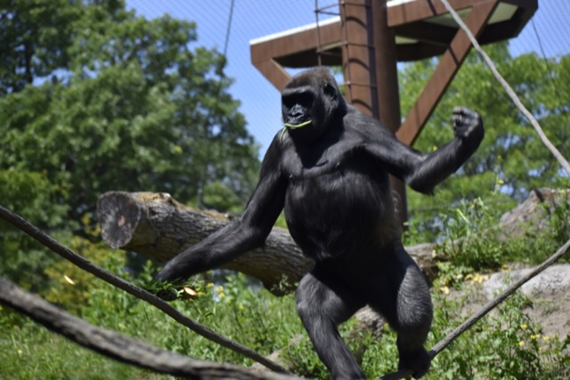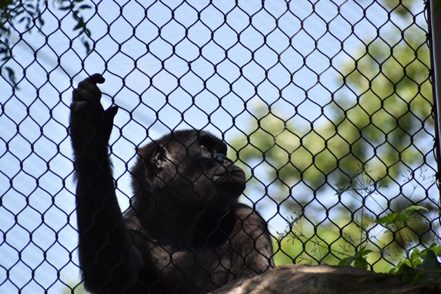 Okay, that’s enough history. The day of our visit was absolutely perfect, weather wise. We went through the zoo first, skipping the show at the aquatic animals area. I happily engaged my camera in the excessive manner to which I am accustomed, so I will prune through my photos and share some of the better ones here, but there will be lots, even so. I got quite distracted at the gorilla exhibit and could have stayed there for hours. Anyway, buckle up!