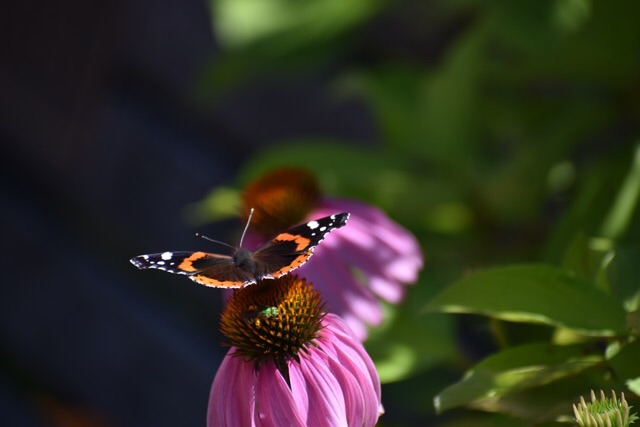 I set before you a complete and perfect set of coneflower photos: not too few, not too many. And I’ve thrown in a few with a red admiral butterfly as well. Or perhaps I should give credit where credit is due: the Lord saw me out there with my camera and in His kindness sent a butterfly for good measure. Positively extravagant!