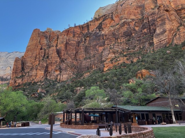 We decided that we didn’t need to take the hike all the way to the Narrows – we could sort of see it from where we were, so we headed back and took the next shuttle down as far as the museum. The shuttle wasn’t very crowded so I sat up by the front. Kris seemed to want to sit farther back, but I told him this way he could chat up the bus driver. He looked dubious about this prospect, but of course he did chat him up, asking all sorts of questions about the electric buses and how long the batteries on those last. The electric buses each cost $1 million dollars!