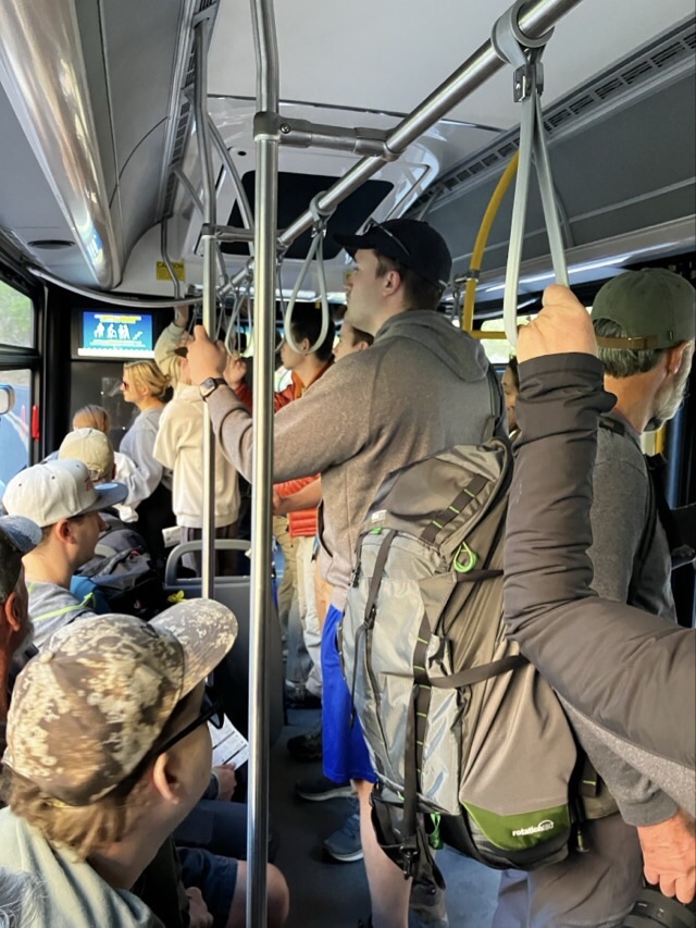 Once in the park, we stopped at the Visitor Center to get our passport and book stamped and then hopped on a shuttle bus to go to one of the stops along the way. The buses were all super crowded.