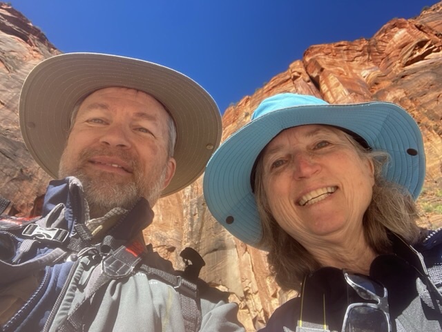 The shuttle to Sinawava Temple was super crowded – standing room only. We never did find out why the area was named Sinawava Temple, but Kris guessed that it was because the surrounding stone cliffs were so high and close and surrounded us, which gave a feeling of being in a church. I’ll buy that. There was a hike up to the Narrows that we walked for part of the way. We took photos, but the surroundings were so immense that photos will never tell the whole story.