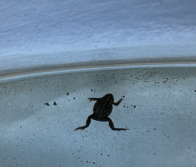 It will not surprise you to learn that water fountains attract toads the way lights attract moths. At night when it’s quiet we can hear the hum of frogs and toads making their nighttime music. It seems sometimes like they’re everywhere around us, but in truth, we don’t see them very often. So today was a banner day, a two-toad rescue day.
