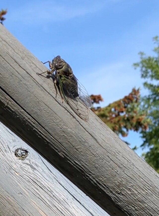 I was sitting on a bench in our garden the other day. A cicada landed on one of the wooden supports right next to me and sang his bittersweet song. I’ve never seen one up close like that. It felt like a special visitation.