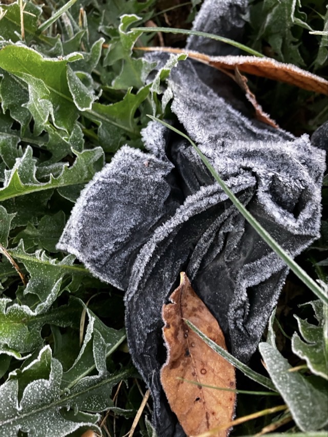 The first glimpse of frost. Just when the heart and soul were tiring of extended hot weather, the Lord sent the first sign of the coming extended cold. Everything in its time.