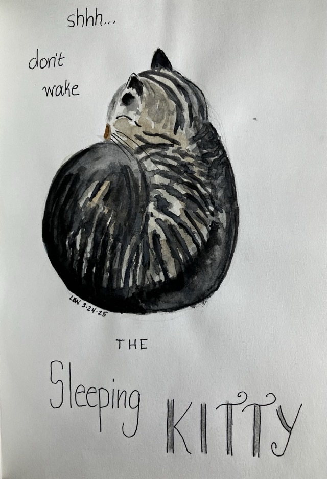 I copied the cats from someone else’s work, but added my own words. I may have shared this painting on the blog before, but don’t feel like going back and checking. The nice thing is that even if I did, you don’t remember it either, so it’s like you’re seeing it for the first time anyway.