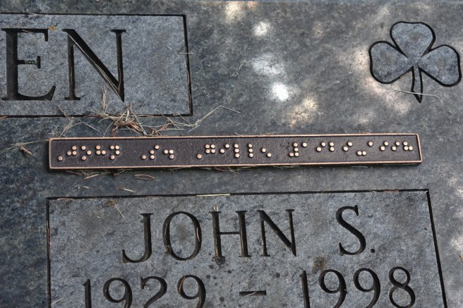 I keep an eye out for epitaphs: poems, Bible verses, etc. I saw one done in Braille and wondered what it said. Others were in German.