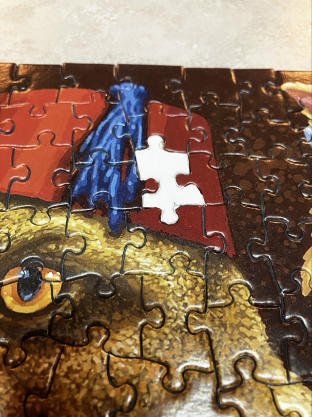 Sometimes you get to the end of the jigsaw puzzle you’re working on, and find out that there’s a piece missing. While this isn’t nearly as catastrophic as reading a book and finding out that a page is missing, it’s still somewhat anticlimactic. The whole puzzle experience has been moving toward putting in that last piece, the moment of triumph!