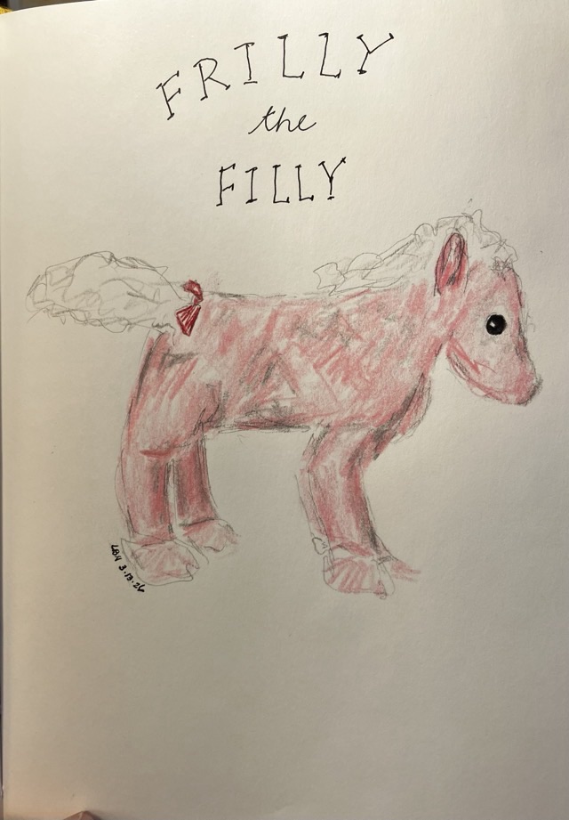 I actually wrote this story for the grands a few months ago, but shortened it for the purposes of the assignment. The main character, Frilly, is a beanie baby that is a favorite of our granddaughter’s, so she often asks me to tell her “Frilly Stories.” Now you know!