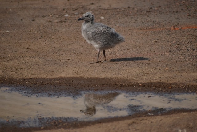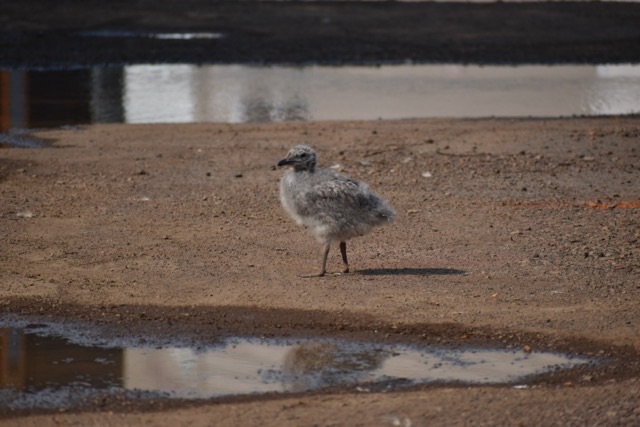 As it happens, I did recently have an opportunity to jump up, grab my camera, and go in pursuit of the aforementioned baby seagull. I took a few photos, getting closer and closer. The baby didn’t seem to mind. I like to think that we were having a moment.